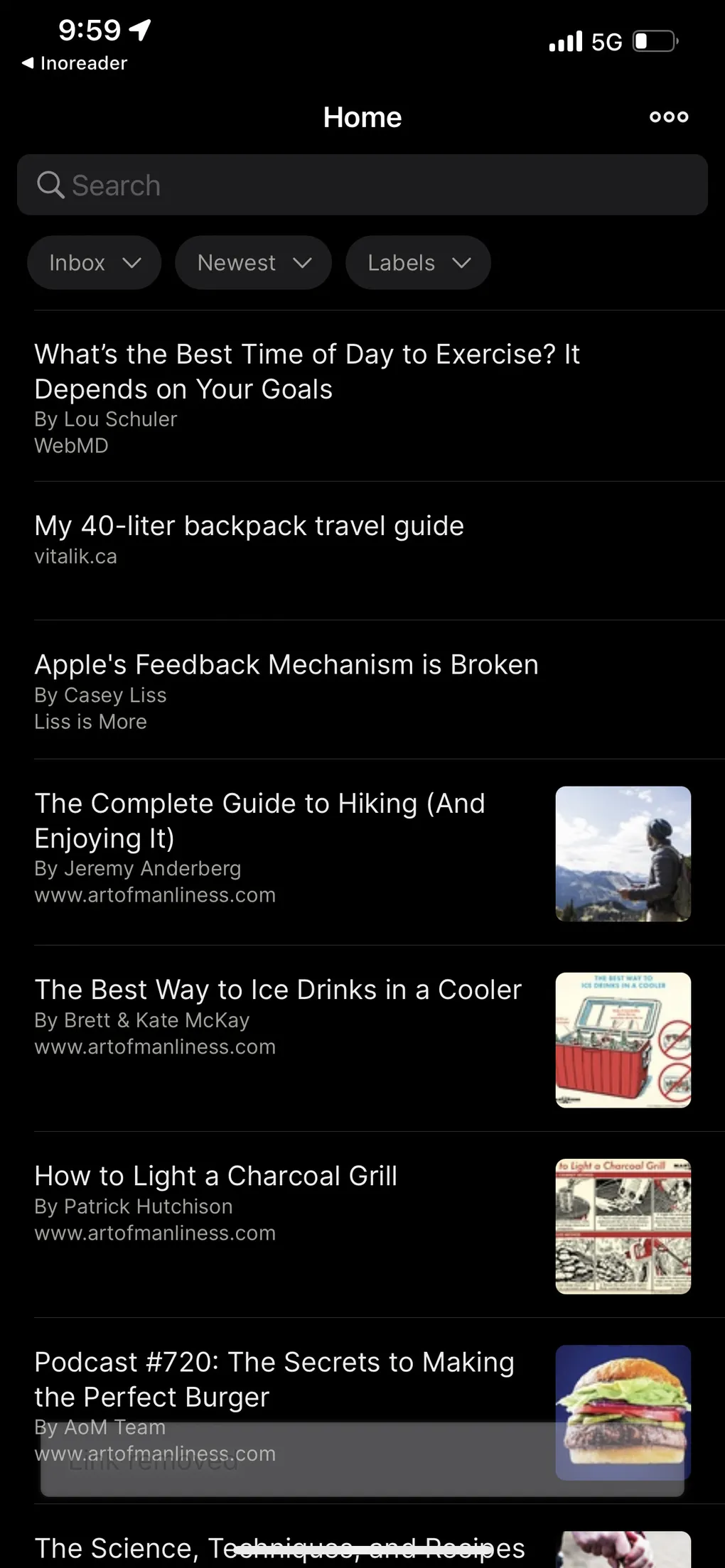 My new workflow is to discover content from reddit, hackernews, twitter, and blogs in inoreader, then send it to omnivore for reading and highlighting. From there, the links and highlights automatically wind up in my logseq graph and I can integrate them into my notes
